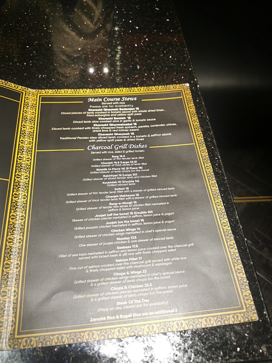 Shandiz Persian & BBQ Grill Menu